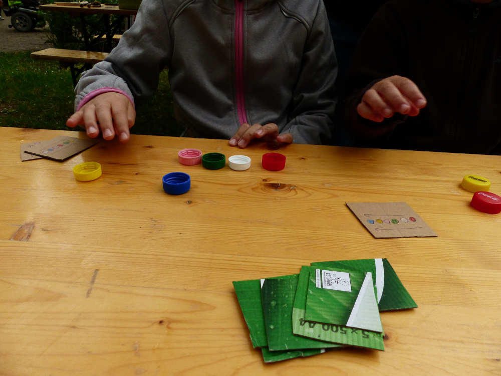 A másik programelem, hogy bemutatok hulladékból készült játékokat. Pl. wc-papír gurigából, műanyag kupakokból, rövidre használt ceruzákból, melyekel írni már nem lehet. Itt mindenféle korosztály talál magának valót.
